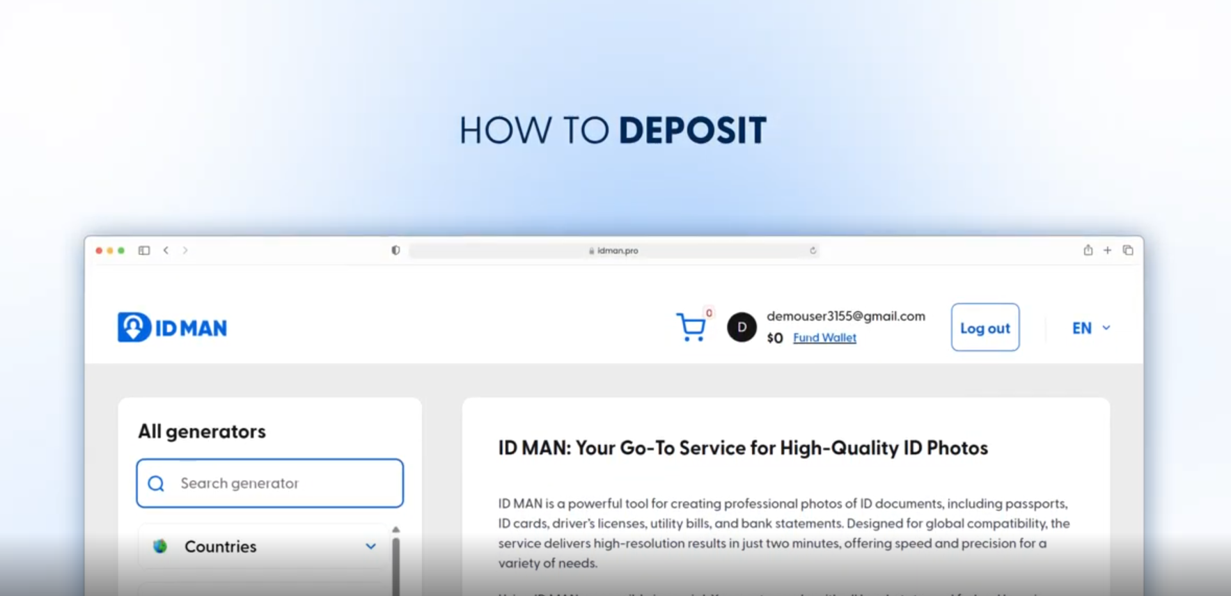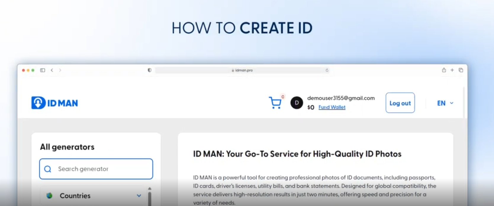 ID MAN is a powerful tool for creating professional photos of ID documents, including passports, ID cards, driver’s licenses, utility bills, and bank statements. Designed for global compatibility, the service delivers high-resolution results in just two minutes, offering speed and precision for a variety of needs.